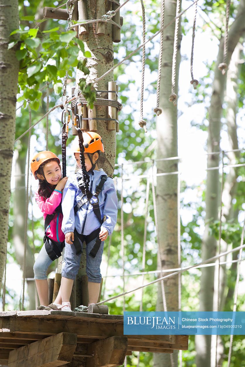 Girls , Chinese Ethnicity , Tree Top Adventure Park , Challenge , Cheerful , Talking obstacle course Outdoor Pursuit Balance Tightrope Childhood Growth Child Carefree Confidence Cute Leisure Activity Vitality Weekend Activities Courage Sport Sensory Integration Tree Adventure Crossing rope bridge Zip Line Rope Friendship Sister Sibling Action Agility People Two People Asian Ethnicity 6-7 Years Children Only Only Girls Elementary Age Enjoyment Expressing Positivity Freedom Happiness Healthy Lifestyle Independence Joy Leisure Lifestyles Modern Playful Playing Relaxation Sports Training Tree Area Tree Trunk Woods Park Danger Security Casual Clothing Helmet Sun-protective Clothing Day Nature Non-Urban Scene Green Outdoors Hanging Scenics Season Suburb Summer Holding Looking Away Smiling Standing Toothy Smile Protection China East Asia Asia Beijing Photography Color Image Front View Full Length Selective Focus Vertical leather harness monkey bridge Canopy Tour acrobranching Mid-Air Outdoor Learning 女孩 中国人 树上穿越 挑战 快乐 说话 超越障碍训练场 户外活动 平衡 钢丝 童年 成长 儿童 无忧无虑 信心 可爱的 休闲活动 活力 周末活动 勇气 运动 感统 树 冒险 横越 索桥 滑索 绳子 友谊 姐妹 兄弟姐妹 动作 敏捷 人 两个人 亚洲人 6岁到7岁 仅儿童 仅女孩 学龄儿童 享乐 表现积极 自由 幸福 健康生活方式 独立 欢乐 休闲 生活方式 现代 好玩的 玩 放松 训练 林区 树干 树林 公园 危险 安全 休闲装 钢盔 防晒衣 白天 自然 非都市风光 绿色 户外 悬挂的 风景 季节 郊区 夏天 拿着 不看镜头 微笑的 站着 露齿一笑 保护 中国 东亚 亚洲 北京 摄影 彩色图片 正面图 全身像 选择对焦 竖片 皮马具 绳桥 丛林索道 过索道 半空中 户外拓展 ......